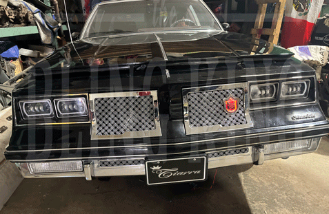 This is a four piece custom chrome triple weave mesh grille that fits the 1981-1987 Olds Cutlass Supreme. It is the newest 3rd generation that Tiarra has put out. These grilles are constructed from solid automotive grade stainless steel that is triple chromed and polished to a perfect mirror finish. This four piece grille consists of two full replacement grilles for the front main grilles, and two smaller bolt on grilles for the lower bumper grilles.